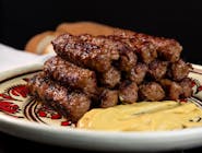 Meniu mititeicartofi prajiti, mici vit-oaite, sala, sos